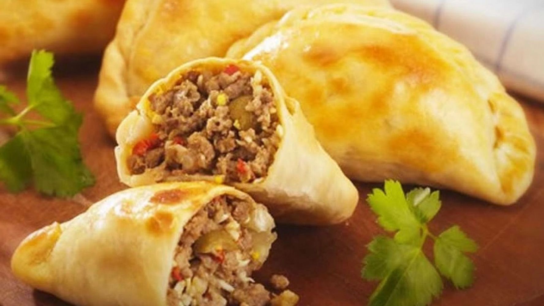 Ground beef, sauteed onions, roasted red bell peppers and black olives.