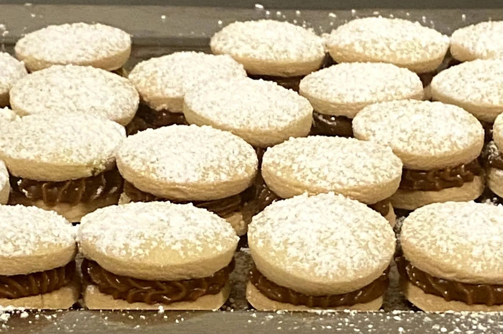 Sandwich of two delicate cookies filled with creamy dulce de leche.